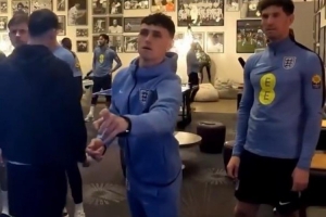 體育資訊3月26日訊 英格蘭隊正在備戰與烏拉圭隊的友誼賽,曼城攻擊手福登展示了自己的飛鏢神技。