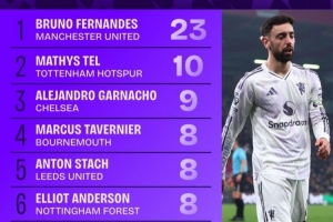 體育資訊3月26日訊 今日,數據平臺Squawka對3月份英超球員創造機會數進行統計,并列出了最多的十名球員,其中B費以23次遙遙領先。