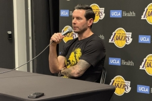 賽前湖人主帥雷迪克穿了一件定制的艾頓球衣出席了新聞發布會,這件球衣正面是艾頓的臉和獅子的圖案拼接而成。