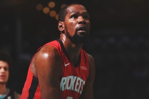 賽后火箭官方發(fā)布贏球海報(bào),杜蘭特成為封面人物。