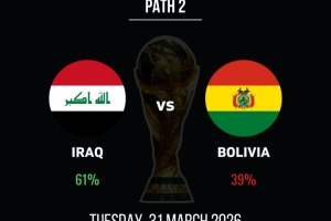 體育資訊3月29日訊 世預(yù)賽洲際附加賽,伊拉克將和玻利維亞爭奪一個世界杯參賽名額。本場比賽之前,伊拉克被認(rèn)為有著61%的晉級概率。