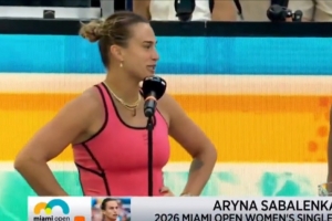 體育資訊3月29日訊 在2-1擊敗高芙奪得WTA1000邁阿密冠軍后,薩巴倫卡在頒獎典禮上發表了演講。