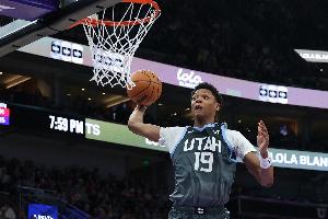 上半場,爵士球員貝利和科迪·威廉姆斯手感冰涼,貝利20分鐘8投0中、三分2中0沒得分,拿到5籃板1助攻3蓋帽,有4失誤,正負值-17;