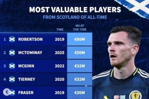 附蘇格蘭球員歷史身價榜: