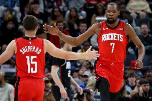 第三節(jié),火箭攻防兩端仍占據(jù)主動,杜蘭特延續(xù)火力壓制對手反撲,單節(jié)火箭29-22凈勝尼克斯7分,三節(jié)打完握有20分優(yōu)勢。