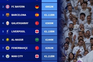 體育資訊11月2日訊 德國轉會市場列出了10月份俱樂部頁面瀏覽量排名,皇馬、拜仁、巴薩前三。