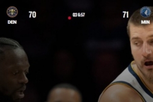 掘金客場123-112力克森林狼,比賽已經結束一個半小時,官網數據仍然停留在第三節。