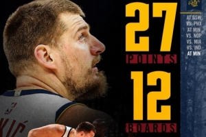 隨后,掘金官方又修正了約基奇的數(shù)據(jù),為27分12籃板10助攻。