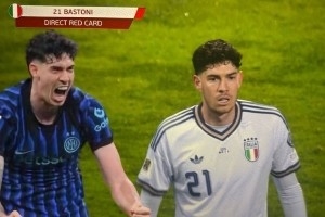 紅牌!紅牌!巴斯托尼犯罪了!不要給意大利人任何的機會!偉大的意大利中后衛!這一刻他不是一個人在戰斗!他不是一個人!馬特拉齊今天愚人節快樂!!!