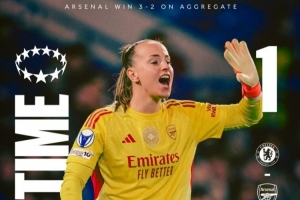 女足歐冠1/4決賽首回合比賽,阿森納女足主場3-1戰勝切爾西女足,次回合切爾西女足憑借尼斯肯在補時階段的進球1-0取勝,但阿森納女足仍以3-2的總比分晉級半決賽。