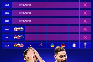 體育資訊4月2日訊 世預(yù)賽附加賽決賽,意大利點(diǎn)球大戰(zhàn)不敵波黑,連續(xù)三屆無(wú)緣世界杯。德國(guó)轉(zhuǎn)會(huì)市場(chǎng)盤點(diǎn)了2006年以來(lái)意大利的世界杯成績(jī)。