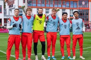 體育資訊4月2日訊 本周,拜仁主帥孔帕尼征召了多達12名青訓營小將參加訓練,隊長諾伊爾在社媒上發(fā)布了一張和5名小將合影的照片。《圖片報》對這5名小將進行了介紹。