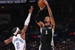 而文班亞馬所率領的馬刺隊就是這個賽季最大的故事和現象。馬刺從上賽季西部第13一下打到現在,要超越60勝,而且三殺衛冕冠軍雷霆。馬刺是這個賽季最大的故事,超越大家期待的。文班的個人表現毫無疑問也是超越大家期待的,馬刺又得到文班這樣一個天賦運動員,能打到今天,這叫馬刺文化的熱血重燃,馬刺文化的王朝重生,這是最大的現象。