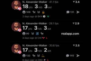 過去5場比賽,亞歷山大-沃克場均可以貢獻18.4分2.6籃板3助攻。