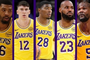 湖人媒體LakersMuse曬出了湖人季后賽的潛在首發陣容:斯瑪特、拉拉維亞、八村塁、詹姆斯、艾頓。