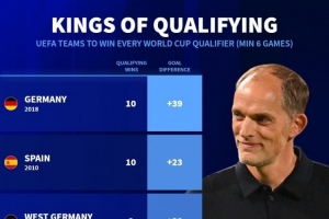 德國轉會市場盤點了單屆歐洲世預賽全勝球隊,德國、西班牙、英格蘭、荷蘭在列。