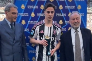 體育資訊4月7日訊 尤文在本輪意甲對陣熱那亞,前鋒伊爾迪茲在賽前領取了意甲3月最佳年輕球員獎杯。