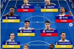 德轉列皇馬+拜仁陣容(總價10.3億歐)