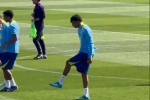 記者:巴薩今日訓練課氛圍輕松,項目是與隊友搭檔確保網球不落地