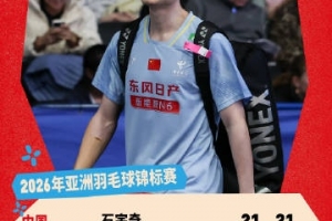 體育資訊4月9日訊 2026年羽毛球亞錦賽次輪,石宇奇2-0李卓耀。