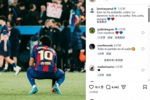 巴薩邊鋒亞馬爾社媒曬出賽后低落的照片,并寫道:“這一切還沒有結束,巴薩球迷們。我們將在次回合比賽中傾盡所有。永遠團結一心。”