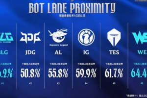 體育資訊4月9日訊 在今天BLG對陣WE的比賽開始前,官方給出了下路親近率倒數排行榜,其中BLG位列第一,這意味著ON的游走頻率非常之高