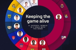 其中對(duì)陣馬競(jìng)便有3場(chǎng)。而與此同時(shí),五大聯(lián)賽其他球員同期最多只有一場(chǎng)成功過人9+。