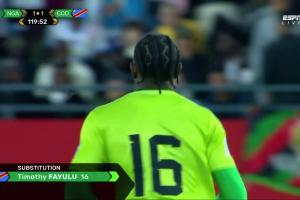 此役兩隊在常規時間120分鐘內打成1-1平,民主剛果專門換門將迎接點球大戰,法尤魯替補登場。