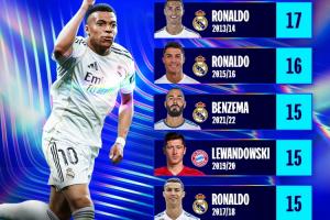 體育資訊04月10日訊 本賽季皇馬前鋒姆巴佩在10場歐冠中已經(jīng)打進14球,歐冠官方曬出了歐冠歷史單賽季進球排行榜,姆巴佩暫時排在第6。同時歐冠官方發(fā)出提問:姆巴佩能升到多高的位置?