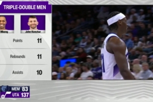爵士主場(chǎng)迎戰(zhàn)灰熊,截至發(fā)稿貝茲·姆本和康查爾同時(shí)達(dá)成三雙。