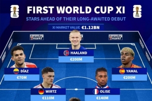 首次參加世界杯球員陣容(總價(jià)11.2億歐)