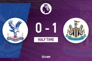 上半場傷停補時2分鐘,半場結束,水晶宮暫0-1紐卡斯爾聯。