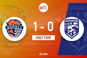 上半場(chǎng)比賽結(jié)束,青島海牛1-0武漢三鎮(zhèn)。