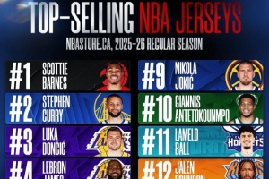 NBA官方曬出2025-26賽季加拿大球衣銷量TOP15的球星,具體如下: