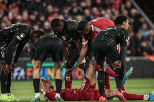 體育資訊4月15日訊 歐冠1/4決賽次回合利物浦主場迎戰巴黎,?;倏松习雸鰺o對抗倒地,疑似遭遇跟腱重傷。