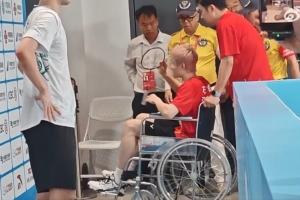 石宇奇對陣翁泓陽的1/4決賽,石宇奇首局取勝的情況下,第二局出現傷病選擇退賽。