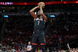 此役杜蘭特出場45分鐘24投13中,三分8中2、罰球7中7砍下35分5籃板6助攻1蓋帽,有5失誤,正負(fù)值+4。末節(jié)杜蘭特連中關(guān)鍵三分,加時賽的中投也幫助火箭擴(kuò)大優(yōu)勢。
