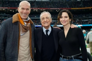 邁阿密海豚和華盛頓指揮官在伯納烏進行了NFL在西班牙的首場比賽,賽前,弗洛倫蒂諾走上球場,與馬德里自治區主席伊莎貝爾·迪亞斯·阿尤索以及皇馬傳奇齊達內合影。