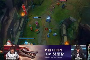 體育資訊04月15日訊 LCK常規賽,KT vs DK決勝局。PerfecT選出納亞菲利上單對線Siwoo韋魯斯,導播給出數據,該英雄首次在LCK以上單身份出場。