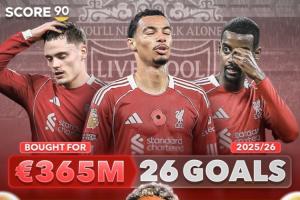 利物浦總共花費(fèi)3.65億歐引進(jìn)維爾茨、埃基蒂克、伊薩克,三人本賽季總共打入26球,只比迪亞斯多攻入3球。