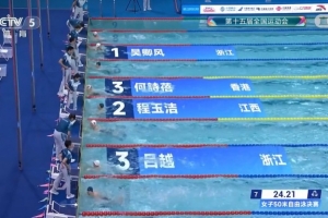 體育資訊11月17日訊 全運(yùn)會(huì)游泳女子50米自由泳決賽,吳卿風(fēng)以24秒21的成績(jī)奪得冠軍,程玉潔收獲亞軍,何詩(shī)蓓和呂越并列季軍。
