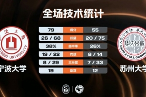末節比賽,蘇州大學的進攻表現終于有所好轉,他們能夠與寧波大學展開拉鋸,不過分差一直保持在二十分左右,蘇州大學沒有獲得任何迫近比分的機會,最終寧波大學79-55輕取蘇州大學成功晉級。