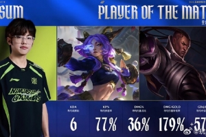 體育資訊4月17日訊 在剛剛結束的LPL的比賽中,Assum兩局合砍19/4/11的戰績,拿下NIP對陣JDG系列賽MVP