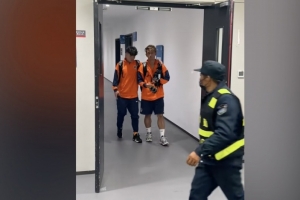 在中超“青島德比”結束后,最后時刻受傷的鄺兆鐳步履蹣跚。