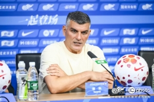 4月17日,成都蓉城主教練約翰·阿洛伊西出席賽后新聞發布會。
