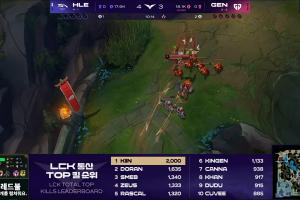 體育資訊4月18日訊 在今日的LCK常規(guī)賽HLE對陣GEN的第二局比賽上,Kiin達成了自己在LCK的2000擊殺,LCK上單位第一!