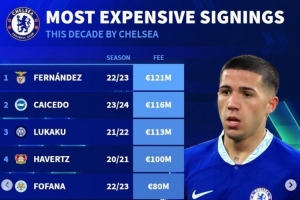 體育資訊4月19日訊 《轉(zhuǎn)會(huì)市場(chǎng)》統(tǒng)計(jì)了切爾西自2020年以來(lái)的最貴引援情況,4人轉(zhuǎn)會(huì)費(fèi)上億歐元。