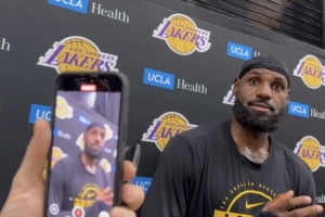 體育資訊11月18日訊 今日,湖人前鋒詹姆斯在訓練后接受了采訪。