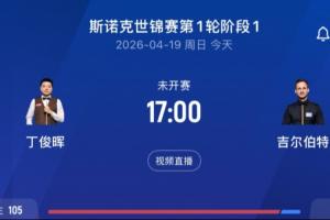 丁俊暉首輪對陣大衛(wèi)·吉爾伯特,兩個階段分別在4月19日17:00和4月20日17:00。