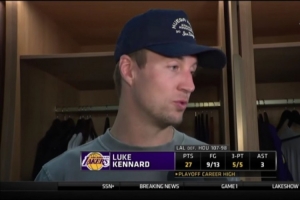 體育資訊4月19日訊 在今天結束的一場季后賽中,湖人以107-98戰勝火箭。賽后,湖人球員盧克·肯納德接受了媒體的采訪。以下是完整版采訪內容。